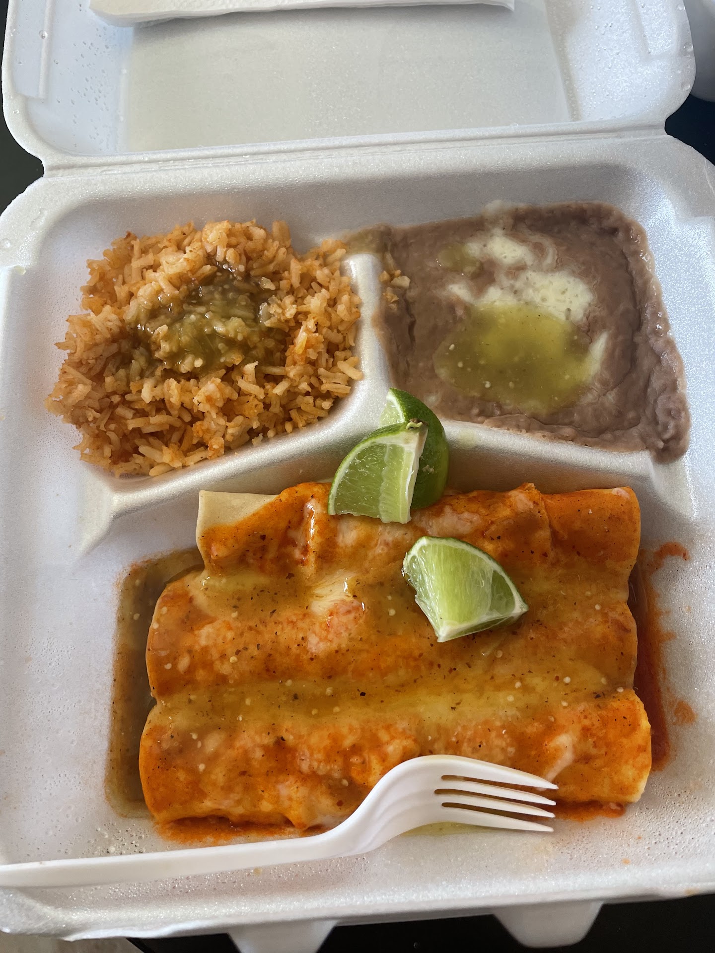 Read moreTACO GRANDE HAS the best enchiladas in the high desert I’ve tried other “Mexican “spots out here out here and they’re salty flavorless or the salsa does not taste Mexican authentic at all. I like to order the chicken one and they use the best pulled chicken I get them either red or green neither are Spicy and I ask for extra red salsa hot and green tomatillo salsa on the side and pour it on the enchiladas and my rice and beans!! Prices are great too I only order my enchiladas from here !! Super home made food and this is coming from a Mexican , even my son whos 2 has ate the enchilada combo with me he...