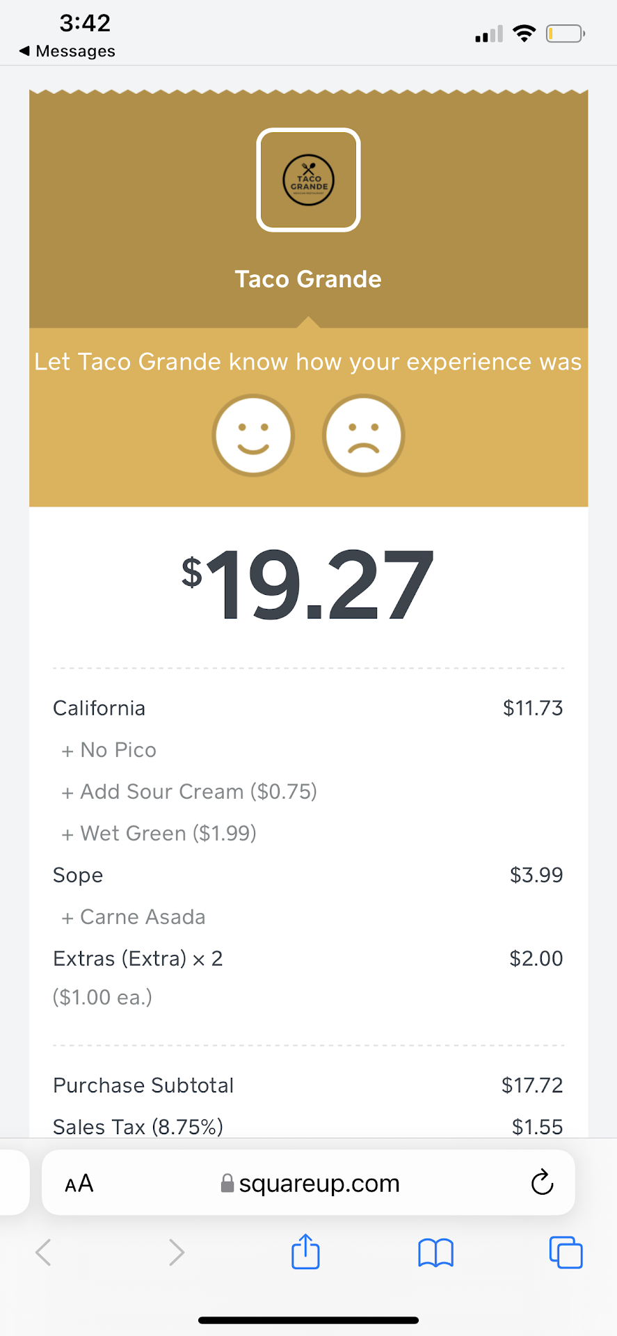 Read moreLast night I ate at Taco Grande with my daughter. It had been more than a year since my last visit. My epectations were that we would receive great food at reasonable prices. I noticed the over the counter menu had missing prices but did not think much about it at the time (my mistake) as I had eaten here many times over the years without incident. My daughter ordered the 2 relleno combination with a Michelada. I ordered the carne asada combo with a fountain drink. I threw in a 15% tip for good measure. The bill was $50!!!! That was enough to feed a large family for a month in Puerto Vallarta, Jalisco. Food arrived quickly and quality was sadly just ok. Given the exorbitant prices, even taking into consideration its Cerpenteria, and the mediocre meals we were greatly disappointed. It made me wonder what happened to the orginal Taco Grande that had amazing food with fair prices. Regretably we will not...