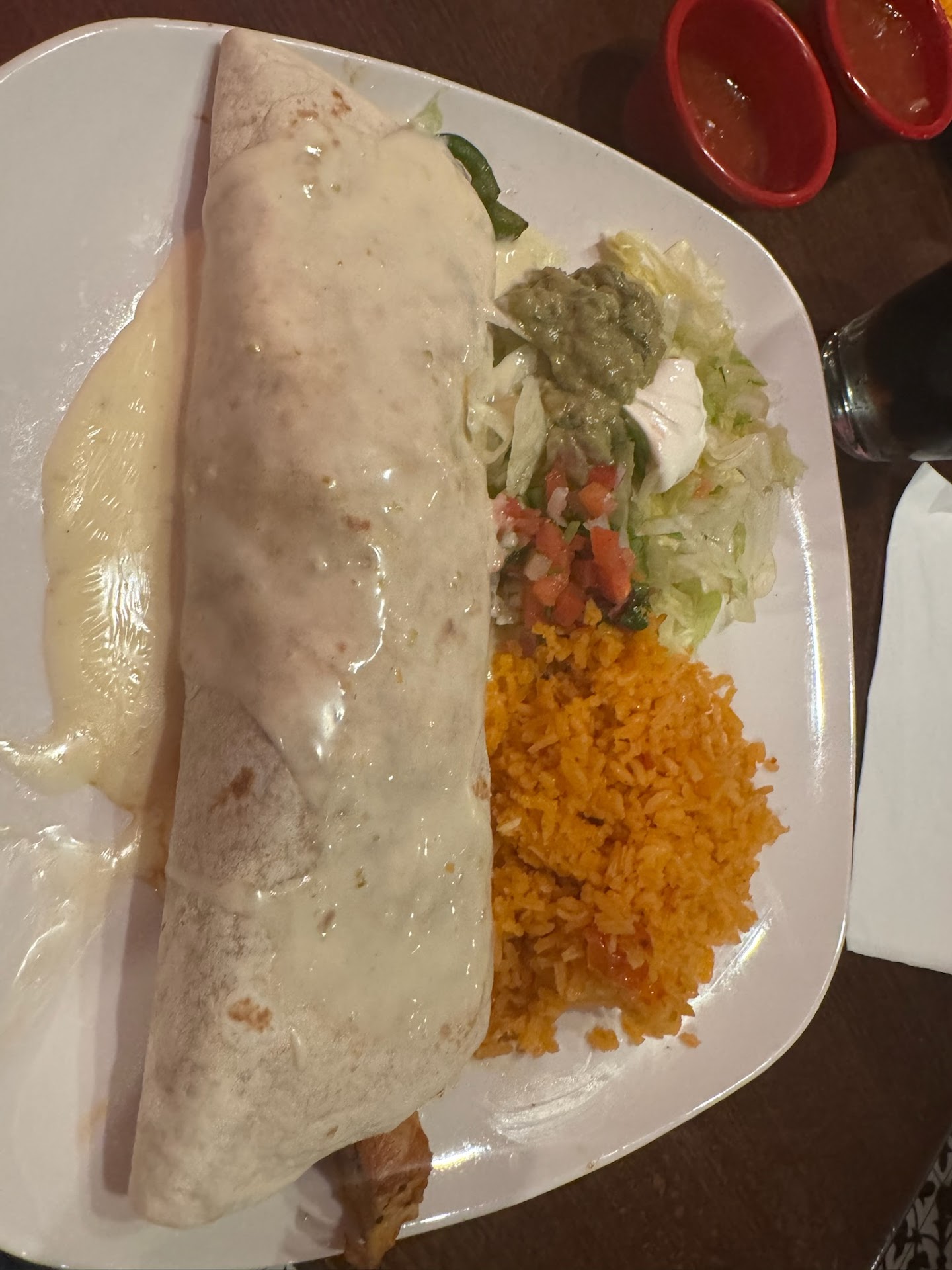 Read moreGood food that's way overpriced. The portion sizes do not match the menu prices. I got the Fajita Burrito. The small burrito was tasty, but it did not include refried beans. I did not see our server in time to tell her. My wife got the Fajita Quesadilla which she always orders. Normally she will eat 1/2 of the Quesadilla - tonight she finished her meal. The location has minimal atmosphere. Service was OK,...