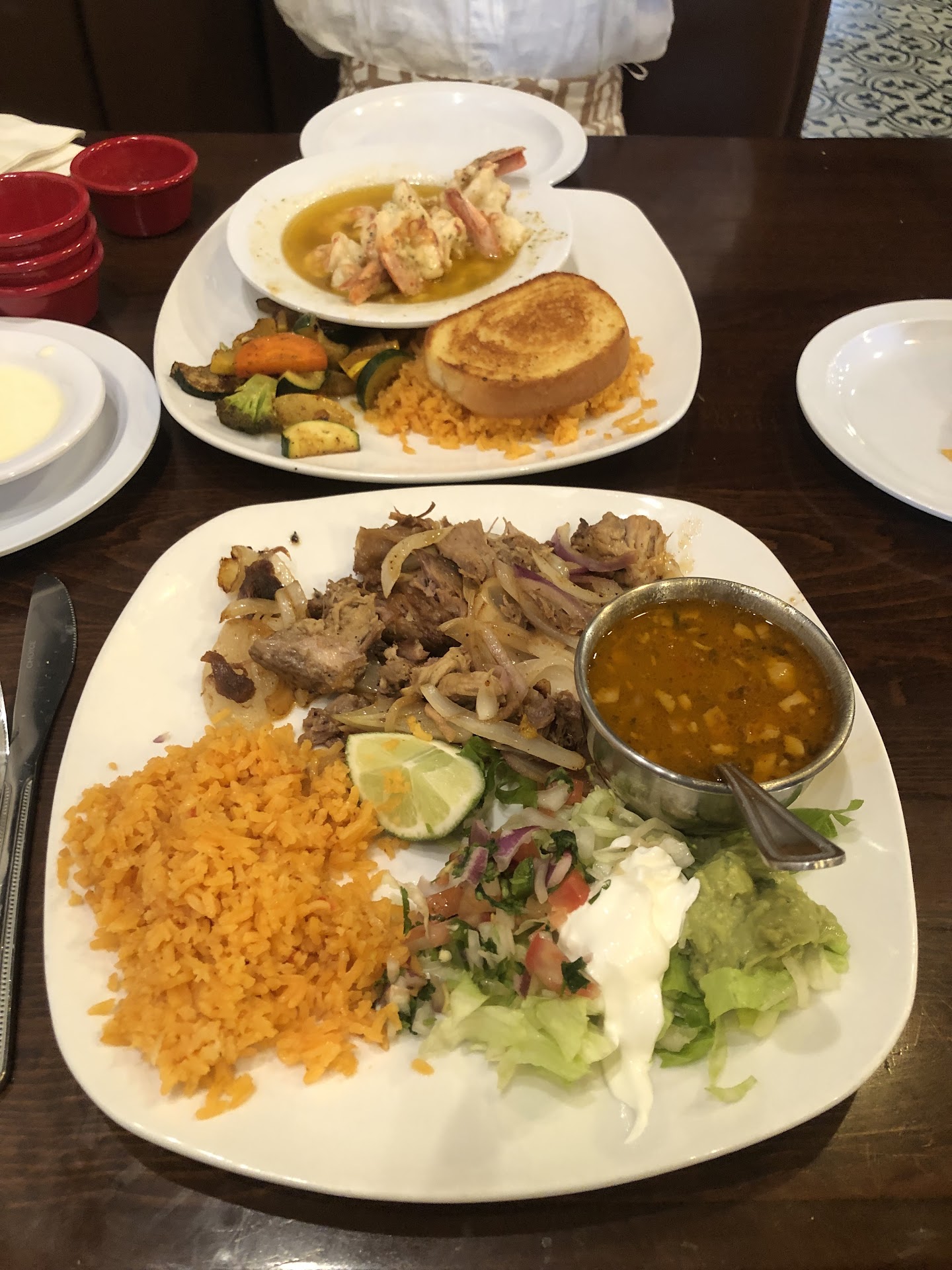 My wife and I had the Camarones Al Ajo and the Carnitas Plate - both delicious and reasonably priced recommendations from our waitress.