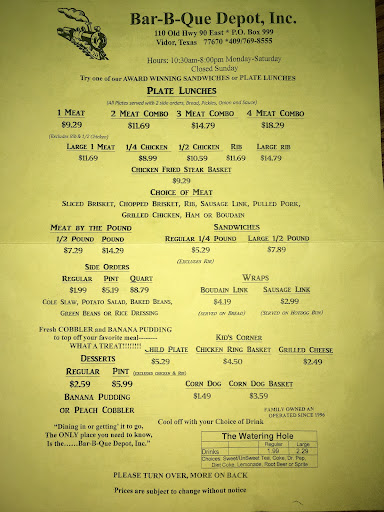 If you find yourself in Vidor, give Bar-B-Que Depot a shot. It's a charming place to eat...especially if you...