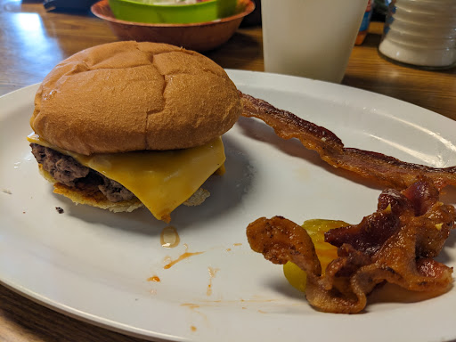 Stopped in for a quick meal. Had a Senior cheeseburger and fries, wife had senior fried shrimp and fries, and we both had sweet tea. All for $21.01 after Uncle Sam got his part. Nice to see a place of business taking care of Seniors. Not only was the price great, but the food was great, and portions were plentiful. Friendly staff, clean everywhere, multiple waiters to take care of any needs, plenty of available seating, handicap parking, and access. What's not to like, especially if you are a Senior watching your budget. We saw several orders that went to other tables that we can't wait to try. I wish we lived closer, but we will return. Western style interior. It's worth the visit. We had a short time to eat, but the service was quick and good served piping hot the way I wanted it. Great...