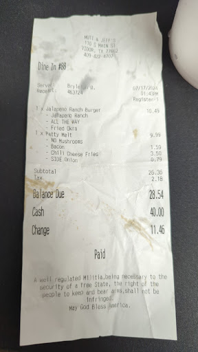 It was only after I got my food when I saw that the onions were in fact on the burger. I looked at the receipt again to verify that we did indicate onions on the side and saw that they had also charged me 79¢ for onions that come with the burger to be put on the side. At this point I didn't feel like getting up again or causing a scene so I picked off the onions and ate my food. Electing instead to leave a review.