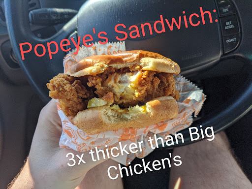 ย ย ย Read moreMy family and I wanted to try it when it was slower and not "so new". We went about an hour before close on a Sunday and were the only people dining in. We ordered the original big chicken sandwich, chicken tenders and bc fries. We did notice it was quite pricey but hoping it was worth it. The chicken on the sandwich was huge and the breading was crispy but light. It was also super thick and juicy. The breading was a bit too peppery, although I enjoy pepper, my kids thought the breading was too spicy. The tenders were cleaned well, we didn't find any skin or tendons in them which we were happy about. We also liked the thinner design of the fries. The sauces seem to taste alike, but we did like them. The customer service and atmosphere were both good. Overall we decided as a family it was good but not great, not something we would make a regular spot. We rated it a 7 out of 10 as a family, taking everything into consideration but price of food and lack of flavor of food really brought the...