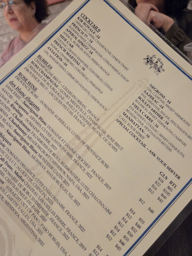 Read moreAstonishingly mediocre food, given the reviews here and the high quality of other fare at similar prices nearby; though the service was great and the atmosphere fine. Each in our party of six ordered a different appetizer, entree and desert (15 items in total), plus cocktails and wine, of which the lamb and spinach side were highlights. The limited menu was by-the-book American “French”, which is to say nothing like one finds at any bistro in Paris, where well-executed riffs on traditional fare is normal. With such a simple menu, one would expect the snails to be plump, the boef bourguignon to be flavorful and steak frites to be special. One member of our party characterized the fare as a step below what one might expect on a cruise. Another wondered if the chef trained in another cuisine and was challenged to make minimally tolerable generic French cuisine as imagined by Americans. Alas, this was how everything but two items on the menu tasted… not bad enough to return to the kitchen but not good. The cotes de Rhône recommended by our wonderful...