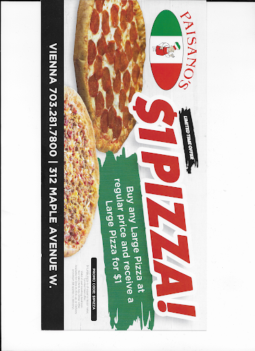 Read moreMy wife and I decided to try Paisano's pizza for the first time based on a flyer we received in the mail. The pizza was mediocre at best. However, it is their "creative" pricing that has me placing a review. The offer (photo attached) is straight forward enough with buy one large pizza at regular price and get a second for $1. Well, according to both the website and in the store itself, a large pizza is $13.99 and each additional topping is $1.79. We ordered two large pizzas with two toppings each. We should have been charged $13.99+$1.79+1.79=$17.57 plus $1 for the second pizza for a total of $18.57 plus tax. Instead, we got charged $22.15 plus tax. I asked the cashier about this and they just printed out the receipt and handed it to me. No explanation for the discrepancy. The receipt supports the flyer but at an inflated price. Just irritating. We will...