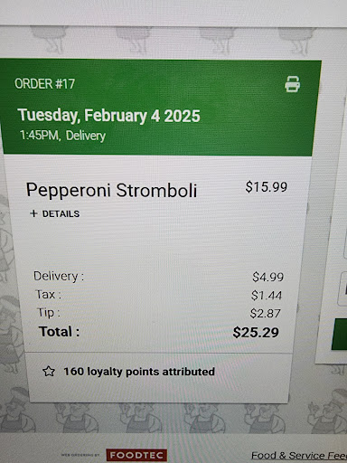 UPDATE: I have ordered here for years, even left a great review in the past-see below. Today, i ordered online. I selected pepperoni Stromboli as i absolutely hate ricotta cheese. I got a pepperoni calzone. I called to ask for a partial refund as i have nothing else to eat all day as i have alot of meetings and have to consume this groos crap. The guy says I ordered wrong, i explained what the screen says i ordered, i offered to send him a photo. He says he has to ask the cook, he comes back and says the cook used only pizza cheese. I advised thats not true, someone made a calzone. I asked him if he knows what ricotta cheese is and he said yes and i advised that its in my food so it's obviously not correct. He says AGAIN i ordered it wrong. I told him im going to take a picture and come down there for calling me a liar. He then says i cant talk to him like that. I said i asked politely for a partial refund and he is accusing me of lieing. I said ive been ordering here for years and now they have lost my business. JUST WOW dude call me a liar, heres proof in my pictures.