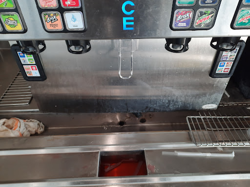 THE DRINK MACHINE AREA: [F-] Let's start with the drink machine, because it's the photos I uploaded. I can't remember the last time I saw this machine clean. Maybe 3-4 years ago? I'm not expecting it to be spotless, I'm reasonable, I used to work fast food, I get the place can be busy. That is no excuse for something to be this disgusting. If it's broken a bit and needing fixed, is been neglected for MONTHS. It smells like MOLD or MILDEW. The carpet on the floor near it is STICKY and STINKS. I didn't even get a picture of the 6 "Wet Floor" signs they have around it. SUMMARY: The most blatantly obvious sign of this place's decline and lack of effort. I requested my drink from the drive thru but have no idea if it was any cleaner.