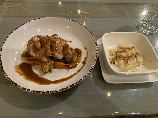 Yesterday, I had a steamed airline chicken dish in a ginger scallion sauce with some white rice. This specific dish was not on the menu, but made available to me because the ingredients required to make the dish were available in the kitchen. That bird, the airline chicken, was divine and had me flying! The generous portions of chicken (bone-in and skin on) were steamed to perfection---nice and moist. The accompanying ginger scallion sauce that includes garlic within it was very flavorful, and natural tasting. I thoroughly enjoyed this dish!