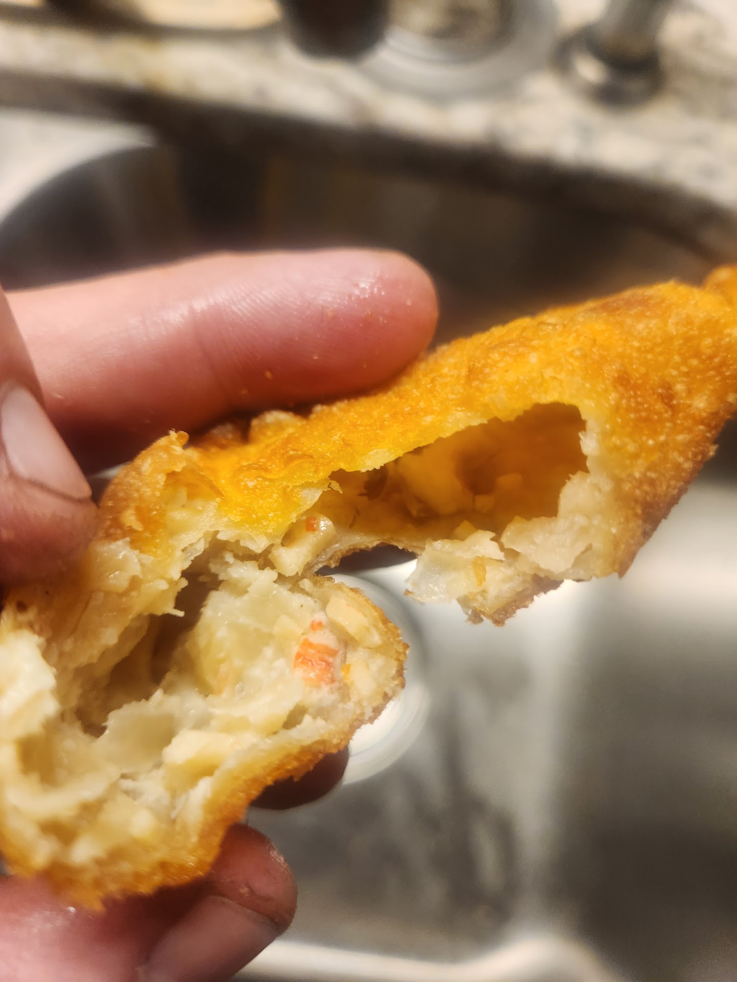 I received my order within 45 minutes in which I was satisfied. The first thing a grabbed before getting my plate together was that crab ragoon I love so much. Took a big bite and ilthe crust had No filling. I figured sometimes it happens so took a bite out of the second and third which were all empty. The last one I broke open and you can see a trace of crab Rangoon but no filling.