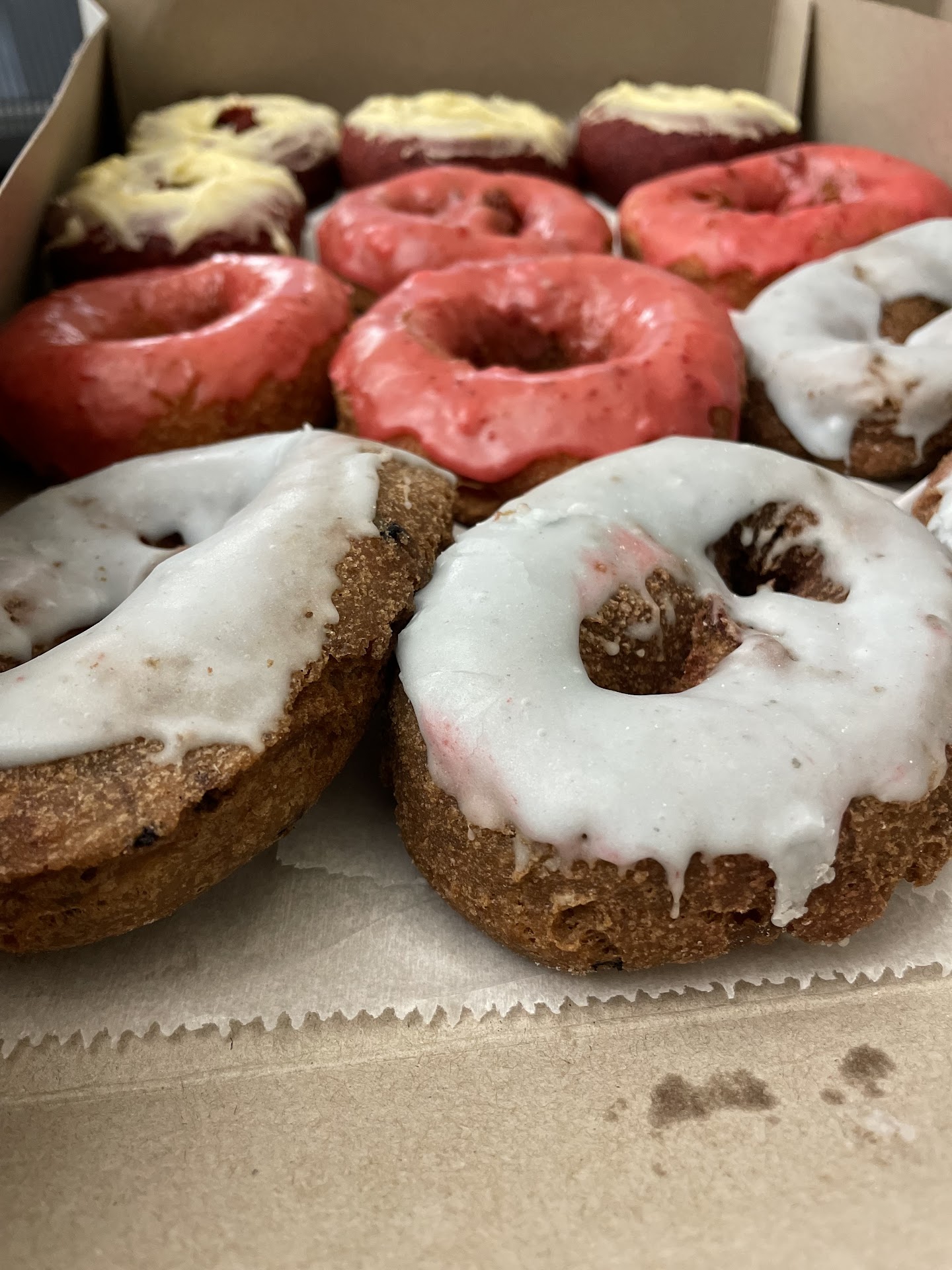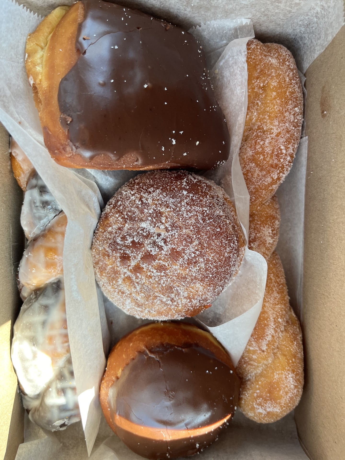 Ā Ā Ā Read moreAfter a recommendation from the coffee shop owner next door, my boyfriend and I came here to grab some pastries. The owner next door recommended the āalmond square thingyā (someone please tell me what this is, it was AWESOME), and we also ordered a huge chocolate donut with sprinkles ā the fluffiest donut ever which had no right being as tasty as it was ā and a double chocolate donut. The customers in there were clearly regulars and the atmosphere was relaxed and comfortable. Plus, for all we got, our total was under $5! WOW. This place rocks and I cannot wait to come backā¦over and over...