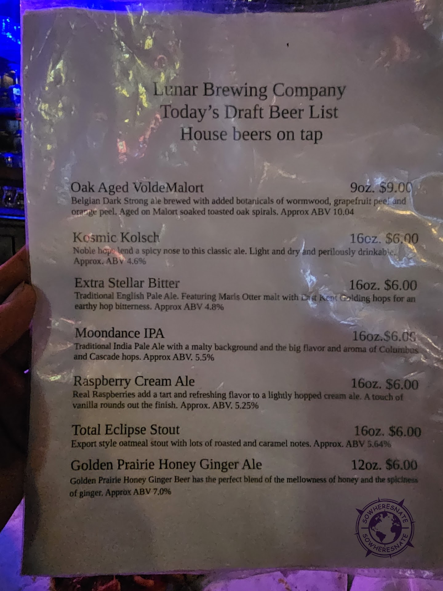 Lunar is way more of an off the beaten path kind of place. It's more of a bar that happens to also brew beer (fully stocked bar, guest taps, and even Bud- bottle only). It's definitely a community business with a strong contingent locals and regulars. Taking my see at the bar, I was definitely an outsider. Service was friendly enough, but they were definitely more content hanging out at the end of the bar chatting with regulars. As much as I felt like I was an intruder, I really like what they've got going. They're a community brewery. Expansion isn't really their goal. Being the local watering hole is their thing and it's cool. There are 3 dart boards around the place and I spent a drink throwing. They've got basic pub fair available, as well as a rotating selection of bombers for purchase (not their own). One thing to note is that they don't do flights, so pace yourself or...