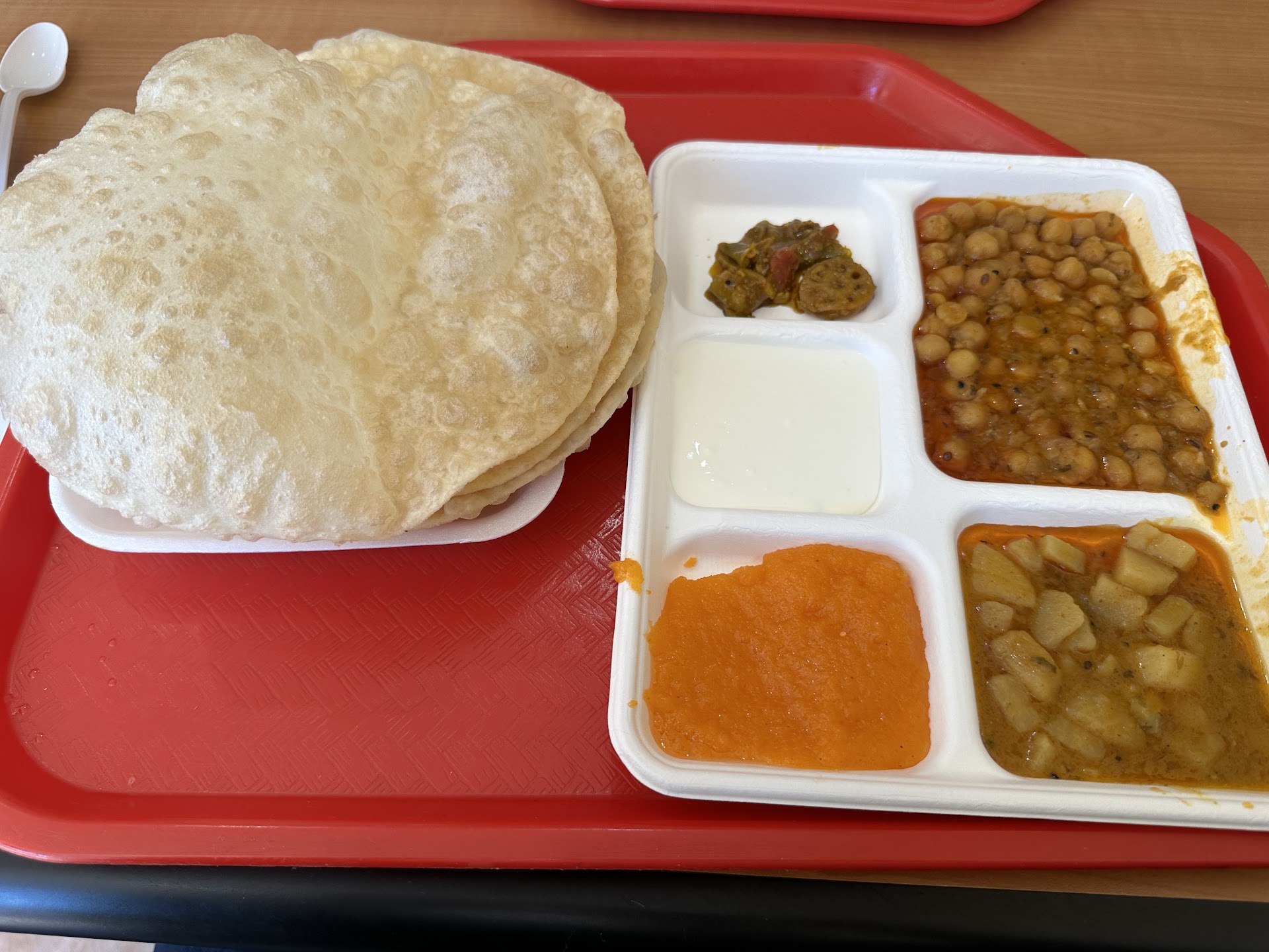 Food itself was ok. I would rate just the food 3 out of 5, compared to the overall experience of 2 out of 5. Halwa Puri was served like a platter with various items in the plate. Presentation was good. Potato salan was really good, perfect balance of spice and flavor, Chana salan (chickpeas) were bit undercooked but the flavor was ok, Halwa was very watery and diluted and lacked the texture but the flavor was decent. This was served with yogurt and pickles and three Puris. Generally speaking at other places Puris are very oily but theirs was just right.
