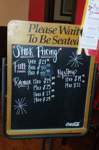 Details: Food A variety of steaks offered at market price. Steaks are cooked over a real open wood-fire grille, giving them a unique "kissed by smoke" flavor, way cool. The portions are generous. The quality of the food for its price makes it an excellent value. Not a huge menu, but the variety is more than adequate, with a good selection of sides.