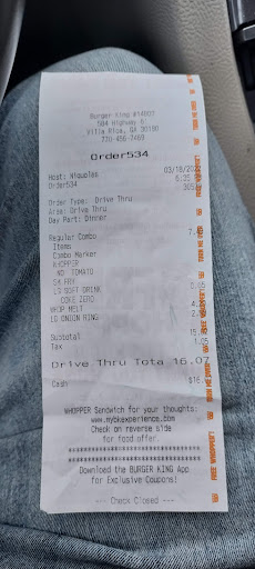 Pathetic excuse for a food establishment. I brought my daughter at 3:20pm on a Thursday to run in for a “large #4 with a S tea.” I did not get a receipt because they did not have receipt paper, said they’re short staffed and allegedly too busy to look. We get home she is upset because she’s been wanting for this #4 for a few days. It’s all wrong. I’m upset because I have to drive her back across town now going into 5:00 traffic. We called I spoke with someone who identified themselves as the “manager.” I explained what happened she said NO WORRIES ILL PUT YOUR NAME IN A BOOK. Four nights later we stop by to get it replaced, the slouchy frizzy abnormally large manager. I think, female, was so rude, she asked me do I have the food? Really? I said it’s no one problem I handed her a $20 asked for my change receipt and food. She walked off running her mouth. I sat for 8 mins waiting for my money I assumed she was gone to make it. She comes back and said I called my DM, no answer, I said why have I been sitting here for nearly 10 minutes waiting on my food my change in my receipt so I can get out of here I told you a second ago I will handle it I don’t need you to make calls for me I want you to speak for me I’m at the house I got a mouth I will do that she throws my money back at me and says I’m not getting you a geeni thing I will be in touch with Corporate. Good luck to you...