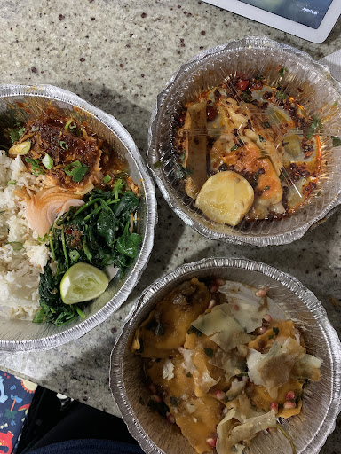 Secondly, the food is delicious!!! I do not know how to classify it exactly; I would say that there are a number of dishes such as soy glazed chicken (off the bone) and teriyaki salmon in bowls with rice and delicious vegetables, such as beautifully cooked spinach, which have an Asian flavor, but you can also order a hamburger and a salmon burger with fries. There are excellent starters as well; they do have a menu of the day, and one day in July, they had zucchini blossoms sauteed in a glazing, which I have not eaten since my Italian grandmother cooked them, fresh from the garden. There are a number of different types of bowls and wraps and sandwiches and dishes, all of which sound fantastic, and I have to.say that everything I have eaten there was delicious. They make their own chips! And one day, when I could not eat another bite of the soy-glazed chicken, I felt that I needed just a little something to end the meal, so I ordered one scoop of their lemon sorbet, which turned out to be white and just a touch sweet and heavenly!