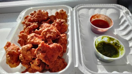 The first time my husband and I visited back in March, we had the daal makhani, which is delicious, and worth the trip right there. We also had goat curry, which is decidedly homestyle (bone-in meat). The meat was a little skimpy, but the gravy was tasty. The basmati rice was nicely seasoned, and you get one container of rice per entrée. The garlic naan is fresh and tasty. We also had chicken pakora, aka Indian chicken nuggets. Again, delicious, and a large serving, and you get two different chutneys for dipping.