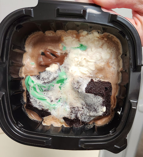 The waiter was a complete clown - he "danced" between tables. Then we had a problem with the check - I received the bill from a nearby table (along with their bank card) and I was already very late to get back to work. I had informed the waiter that I was on my lunch hour and we still ended up being at the restaurant for 75 minutes and it was not even busy. I took my dessert with me because there was not enough time to eat it there. When I got to work, I realized it was completely sunken in the middle with the whipped cream melted. My niece said it must have been microwaved. I could have prepared much better food myself at home.
