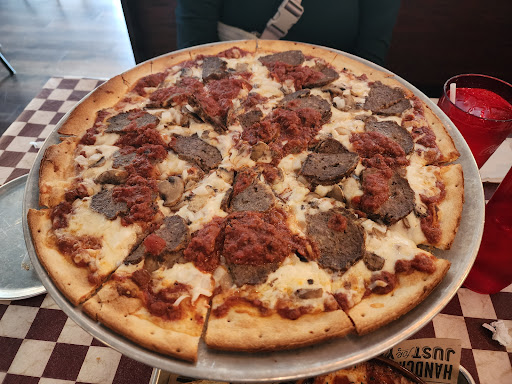 Read moreTo start with, I know it sucks to have to compete with Pizza Hut and Dominos. They can afford to make these pizzas at half the price. But they also just make better pizzas than this one. I just went for a one-topping hand tossed large pizza with their signature sweet sauce, and I got a pie with a pretty uniform inch and a half of dry crust, lacking any of the chewiness I tend to expect in a well worked dough. Then there was a relatively thin application of their sweet sauce, which was surprisingly flavorless, except a little sweet. I guess I was expecting a little bit of heat to complement the sweet, or something to make it taste a little less like Middle School cafeteria pizza, given they made a big to-do about their sauce. The cheese was nothing to write home about, but it did the job, and the toppings were laid out fine, if you ignore the fact that I paid for two cans worth of olives to get a handful. I know I'm coming down hard on this pizza, but it's the most expensive food item I've had in months, and it only made me regret that I didn't go to a soulless franchise. Charge...