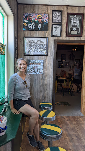 What's most surprising is the ultimate Green Bay Packers fan cave that's further inside. There's a ginormous couch that probably sits 12 comfortably in front of a large screen TV. The entire room is decked out with all kinds of Packers memorabilia, including a replica of the Lombardi trophy. The owner Keith was holding a game day event the weekend we were there that some Packers players were set to attend. I can't imagine a better place for diehard fans to watch a game.