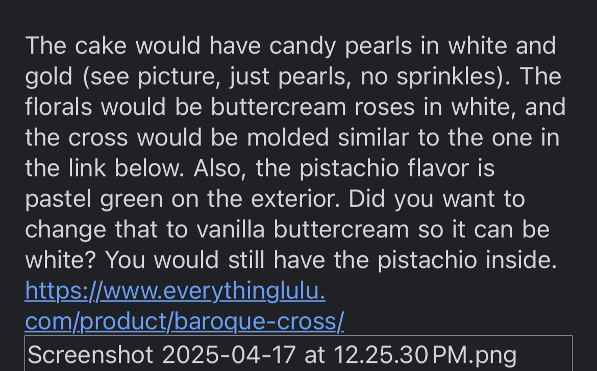 Unfortunately i had a very disappointing experience with Lulus for a cake for my daughter’s baptism. I ordered a cake through their online form indicating a white gold theme. There was no follow through on their part to ensure the order form was clear but i did however email and ask what the flowers, cross, and colors would look like. I was told the cake, cross and flowers would be white. I show up to pick up the cake and there are spring colored flowers all over it. They fixed that on the spot but when i got home i realized the cake was very yellow looking and not white as i was told. This is for a christening so the white theme was crucial. There was also a stark white plaque with black writing that added to how yellow the cake looked in contrast. All around not aesthetically pleasing, not cohesive looking and not white & gold themed as i had ordered. My expectations were high because they typically have very beautiful, elegant looking cakes. I called back and they told me they can’t achieve white with their butter cream despite them telling me it would be white and their instagram having a highlight of buttercream cakes that are very much white. If you can’t achieve white, that’s something you tell the customer in advance. On top of this, a giant crack formed through the center of the cake within an hour of bringing it home. I called back and they begrudgingly told me to come back the next morning (the day of my daughter’s christening) to see how they can correct. In talking through how to correct i asked if they could remove the cross (that i paid extra for) and just pipe more flowers in its place (as their would be a giant blank space without it). I was appalled when i was told i would need to pay extra for that. The cake was not what i had asked for and had a giant crack in it so to ask me to pay for them to make minuscule changes to correct the cake was outrageous. The owner then steps in and instead of being a voice of reason and hospitality, he was rude and condescending. He told me he was missing his child’s softball game to correct my cake. Which was actually a lie because his employee told me he would be there in the morning before i said i would be back. He tried to make me feel like i was inconveniencing HIM on the morning of MY first daughters christening. This is YOUR business. That’s the sacrifice you make when you own a business and it’s not the customers problem. He essentially told me i was difficult and asking for too much… a simple white buttercream cake; apparently a tall order for Lulus. He then told me they did not have enough buttercream to fill the crack and add flowers so they would need to use sugar flowers that were set aside for a much more important client than me (in essence). He made a point to tell me how expensive they were and how they now would have to make more for the other client. Once again i was inconveniencing him and he made sure i was fully aware. Before i could even reply he condescendingly said “ are you going to be ok with that ? Because you seem like you would have a problem with that” Implying I was very difficult and hard to please. Again, i asked for a simple white buttercream cake. Ultimately they fixed the cake and it looked beautiful but the road to get there was rocky...