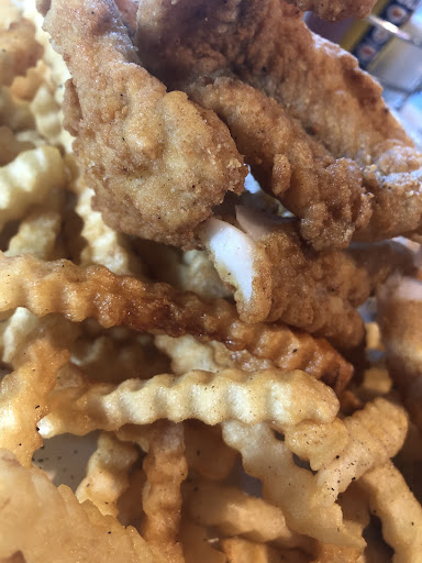 Inside was a great atmosphere. It wasn't crowded at all. Social DISTANCING in affect. This was at 7pm on a Thursday. Air conditioning, very clean, and the service was courteous and quick. Clean bathroom as well...as far as the men's in concerned. I will definitely be returning to this place. Can't wait to try a fish dinner or a burger. They...