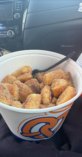 Global chain of counters dispensing sweet & savory soft pretzels with a variety of toppings & dips.