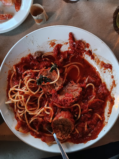 Food: If the attached photo doesn't scare you off already, let me paint you a verbal picture. I ordered the most basic Italian restaurant food you could think of: Spaghetti and Meatballs. I knew I was in trouble the moment they set my plate down. What I received was what looked like a plate of just sauce. I moved the sauce and found that there was in fact some noodles underneath. However, they were still swimming in undrained pasta water. Eating it was exactly like it sounds: wet, overcooked, soft noodles with what I can only assume was watered-down store bought sauce. The meatballs on top tasted on par with a certain Chef Boyardee. My wife ordered a shrimp, pancetta pasta with a tomato mascarpone sauce. The noodles were a bit better in hers, but the sauce was very grainy due to the mascarpone not mixing well. The shrimp was over-cooked and rubbery and the pancetta was the only thing providing some sort of seasoning in the dish. The calamari we received came very hot and surprisingly edible by itself. It unfortunately came with the same sauce that was on my spaghetti, but the calamari itself was decent.