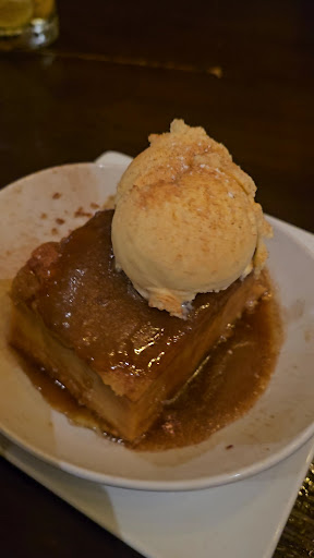 For mains I got the Salmon Caesar, my daughter got the mini corn dogs with carrots, and my husband got the Smoked Gouda burger. My salmon was cooked perfectly and had great flavor. My husband loved that first bite of his burger, but then realized upon eating that it was much more rare than he liked. Our waiter came by and asked about it and my husband said it was too red for him and our waiter offered to bring him a new one. My husband politely declined as he was already full from everything else and there was no need to take it off or anything. We then ordered the bread pudding and all 3 of us shared it. It was just as yummy as I had remembered, just maybe a little more dense than last time.