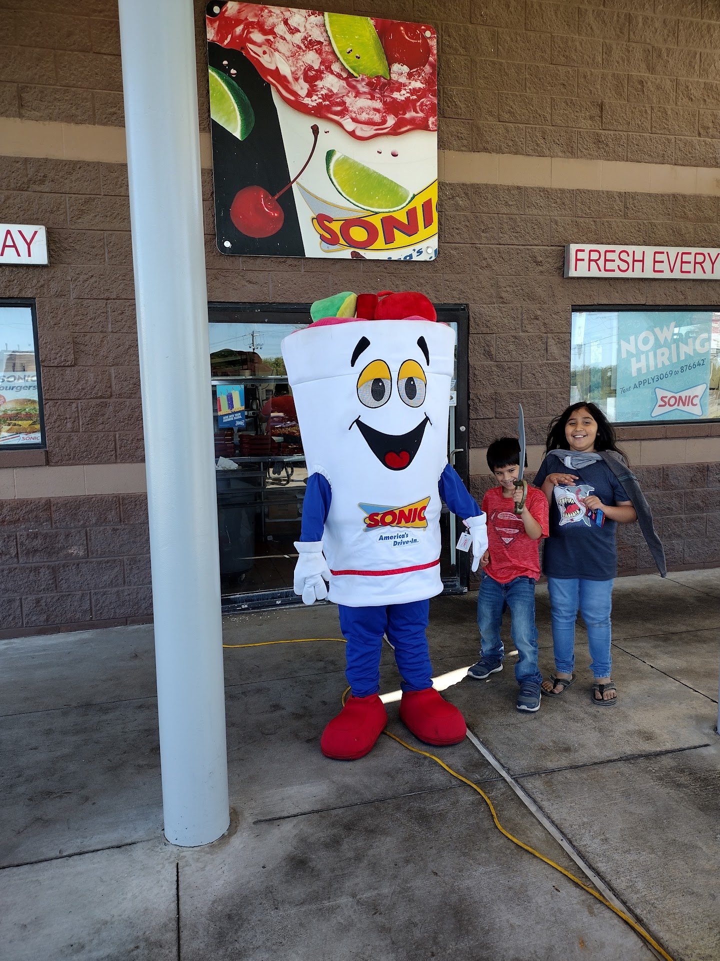 Read moreIt was a EXCITING & EXCELLENT DAY TO END UP AT SONIC, This Location Went Up & Above The Call of Duty & Brought the costume man sonic out to play with my 2 kids... It's Soo sad that all the other fast food restaurants no longer bring costumes out for the kids.. but Sonic Did.. wish I could see the Hamburgler & Sonic in outfits together.. but McDonald's don't do costumes anymore anyways... So the Hamburgler will never be seen again anyways... So that's why it's Soo important to keep the Sonic Guy Alive... Gotta have somewhere to take the kids for a surprise.... Keep the Costume Sonic, It's Iconic & Not to Ever Put Down Like McDonald's did.. thanks for a great experience... Ps the minus is for your food, however the costume man made the kids Soo happy that noone complained...