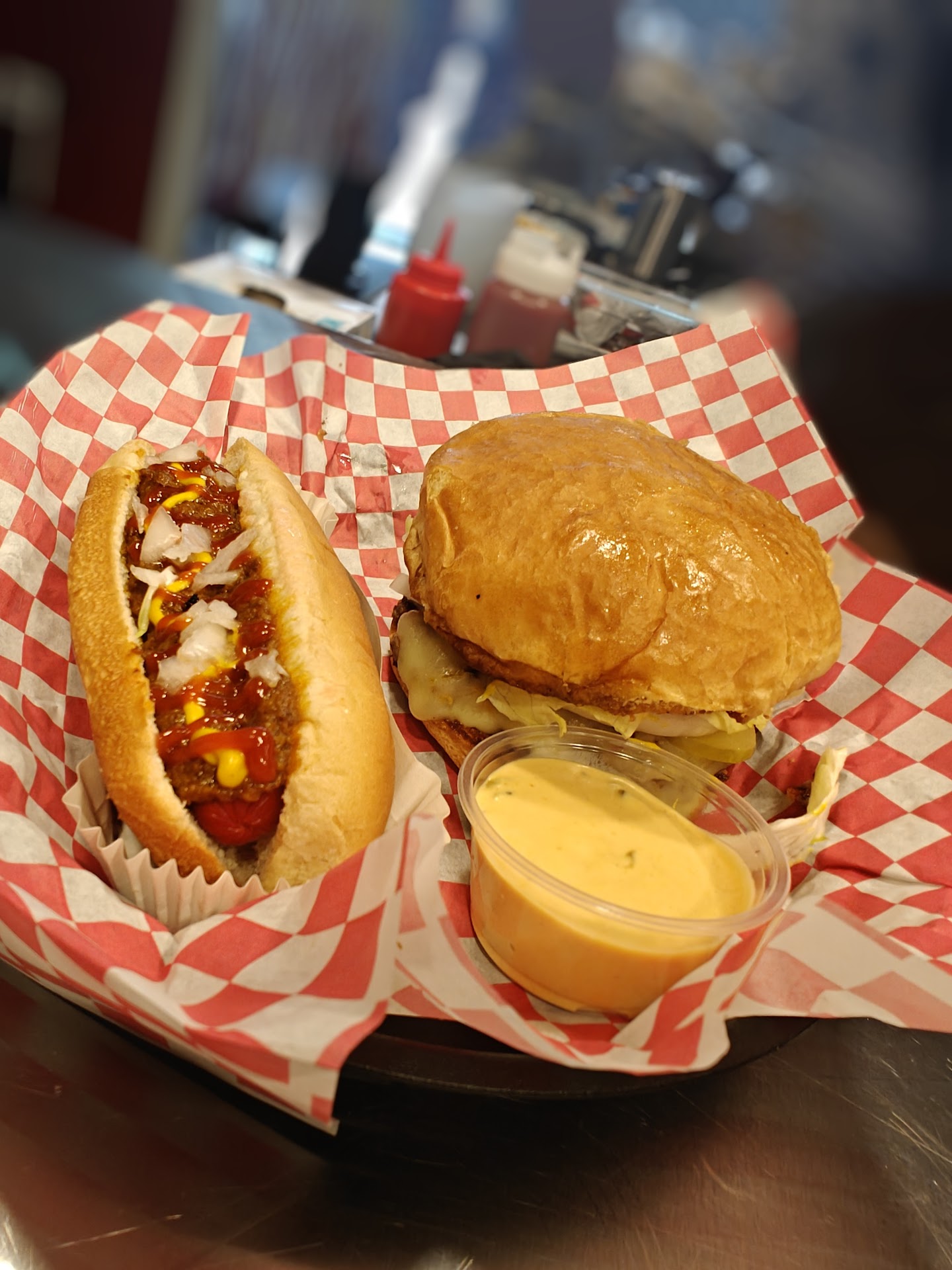 I opted for a classic smashburger, adorned simply with grilled onions, mustard, and ketchup, alongside a side of fries and one of their famed red hot dogs. What arrived at my table was a revelation in unpretentious yet expertly crafted comfort food. The smashburger, seared to perfection, delivered a rich, beefy flavor complemented by the gentle sweetness of the grilled onions and the tang of mustard. The fries, golden and crisp, carried just the right amount of seasoning to keep each bite addictive. But the real surprise? The red hot dog—snappy, well-seasoned, and dressed with fresh, vibrant toppings, all nestled in a soft, pillowy bun.