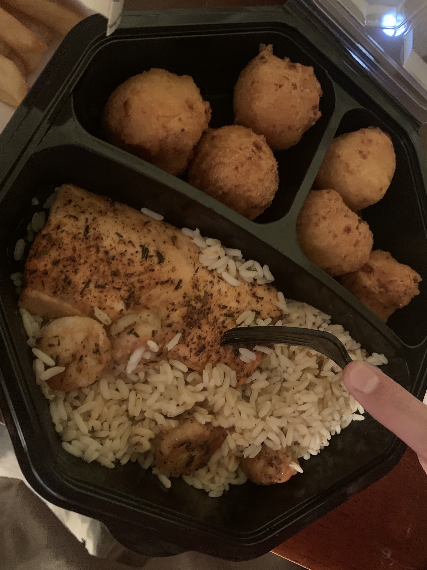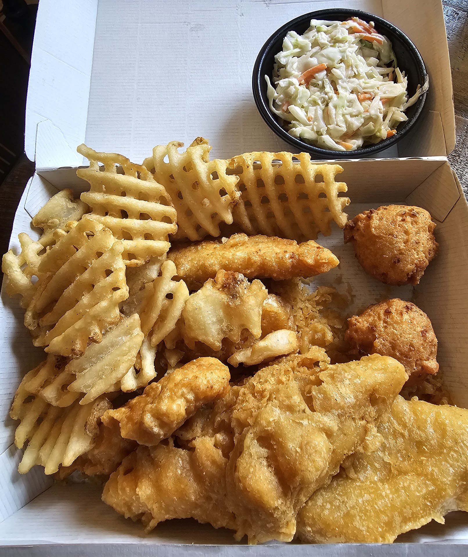 Read moreOrdered what used to be called "Fish and More" which is now a menu number, and includes 2 fried fish, 2 hush puppies, and your choice of 2 of four sides. I chose the Cole Slaw, which was very crisp, nicely seasoned, and tasty. The Waffle Fries were very hot and crispy, as were the hush puppies. The fish was greasy in the breading, but the portions were large. The meal was served with generous packs of ketsup or other sauces as desired, and a generous serving of crispy fried bits as a bed for the fish. The meal was more than enough for me, and I took over half home for another meal, as did my dining partner, who ordered the same. The kind gentleman who took orders and expedited the food was friendly, fast, and accurate. The atmosphere was not outstanding, just regular tables and chairs, which were clean. Signage around the room, both professional and handmade, gave information or promoted different items. Overall, it was acceptable food for a fast food restaurant, served hot and seemingly fresh. The ice tea I ordered had...