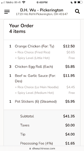Read moreWell, we ordered DH WHU twice, both times because our first selection was closed. I can’t say anything bad about the staff. They were attentive and polite. In regard to the food, I feel my 8 year old could cook better with a recipe off google. Some dishes are marginally decent, though most we tried were only food for the insinkerator. I have heard good things about the Thai restaurants in Pickerington, and AJ Wingburger’s Korean, but Pickerington’s Chinese Restaurants have got to some of the worst in the country. If you really must have Chinese, take the time to drive to Canal Winchester and eat at Dragon China. Even If gas were $10/gal, I’d still drive to Canal. Heck, I’d walk. I am curious to see if those who provided high marks for DH WHU have eaten Chinese anywhere other than...
