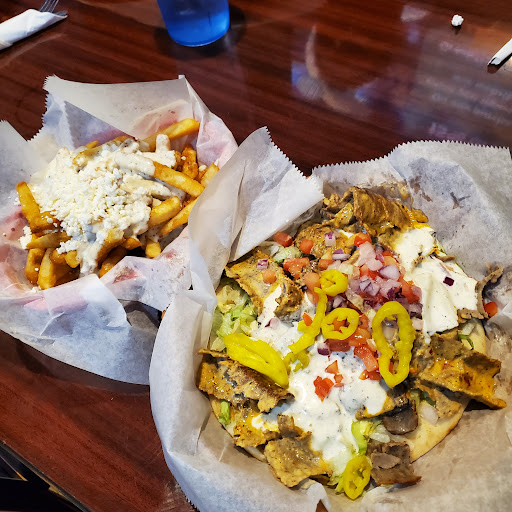 Read moreWell this place ... first blush.. the condiments tray was stuck to the table.. hmmm? And the 1 waitress.. she was so slow...I almost walked out..even though I was craving gyro....to Zapata's next door. There is NO atmosphere here at all. I guess its the Greek equivalent of a McDonald's.. but waaay slower. I ordered a regular gyro... PROCESSED meat. Not great. Same exact flavor and look as the Gyro meat out of the freezer gyro kit you get at Walmart. And the very stingy meat serving was barely warm when the waitress plopped the plastic basket on the table. The feta fries which cost $2more... were the best part of the meal... only the tablespoon of feta wasnt worth the extra $2. And the baklava which I love was served not JUST COLD BUT FROZEN!! I seriously DO NOT recommend this place. Maybe its better at night when the bar is open and they lower the lights..and you've had a few to many beers. Because at that point who cares what it tastes like and that its frozen as well. Nope this place isnt even worth the 1 star. Dont bother coming here because at least McDonalds replaces a tasteless and cold meal if you tell them. For the EXTREMELY HIGH PRICES of the food stuffs...Save your money and go buy the frozen gyro pack and baklava at Walmart. It's way cheaper and tastes the same...and at home you know it's going to be hot when served...
