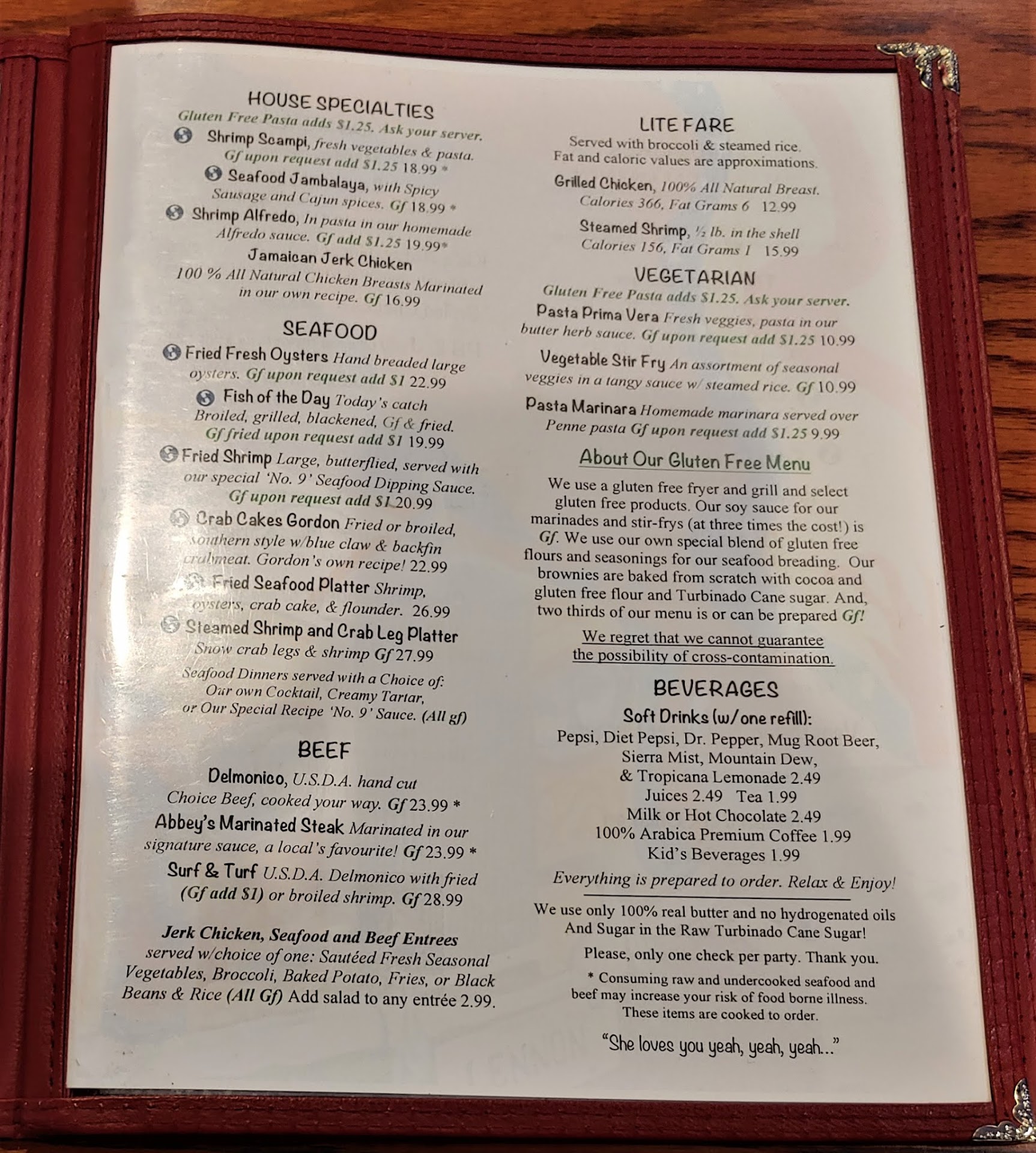 Read moreAfter giving blood in VA beach, I explored restaurants in the area with gluten free options. This place had a ton of options and great reviews so my group of 3 decided to try it out. Even though it was not busy. We waited about 20 minutes for a table. We realized probably due to short staffing. Once seated our waitress took our orders. 2 grilled chicken sandwiches, an abbey burger and some drinks. About 15 min in, the waitress said our food was coming out soon. Not a minute later another waitress brought our food. Fries were all cold. Chicken sandwiches were room temp and rubbery and the burger was not edible. It tasted as though the grill hadn't been cleaned in months as the char marks ruined the taste of the meat. We waited while our waitress finished up orders on a table of 15. She came over and we started to explain and we were cut off with "I'll just credit your food and you can pay for your drinks". Wow! I didn't come for free food. Two of us had just given blood and needed to eat. We informed her of this and her demeanor changed. At that point we were done. Just bring us our check. The hostess cashed us out and I asked her if it was normal to not offer to remake food when it's not edible. She says "no but we are very short staffed". I understand the state of affairs our area is in, but if you cannot serve and keep up with edible food, maybe you should decline large parties (there were 3 tables of more than 10 people during our visit) or close for the day. It's nearly impossible to ruin a chicken breast and a frozen hamburger. While the gluten free options are amazing and the staff seemed friendly this food was an...
