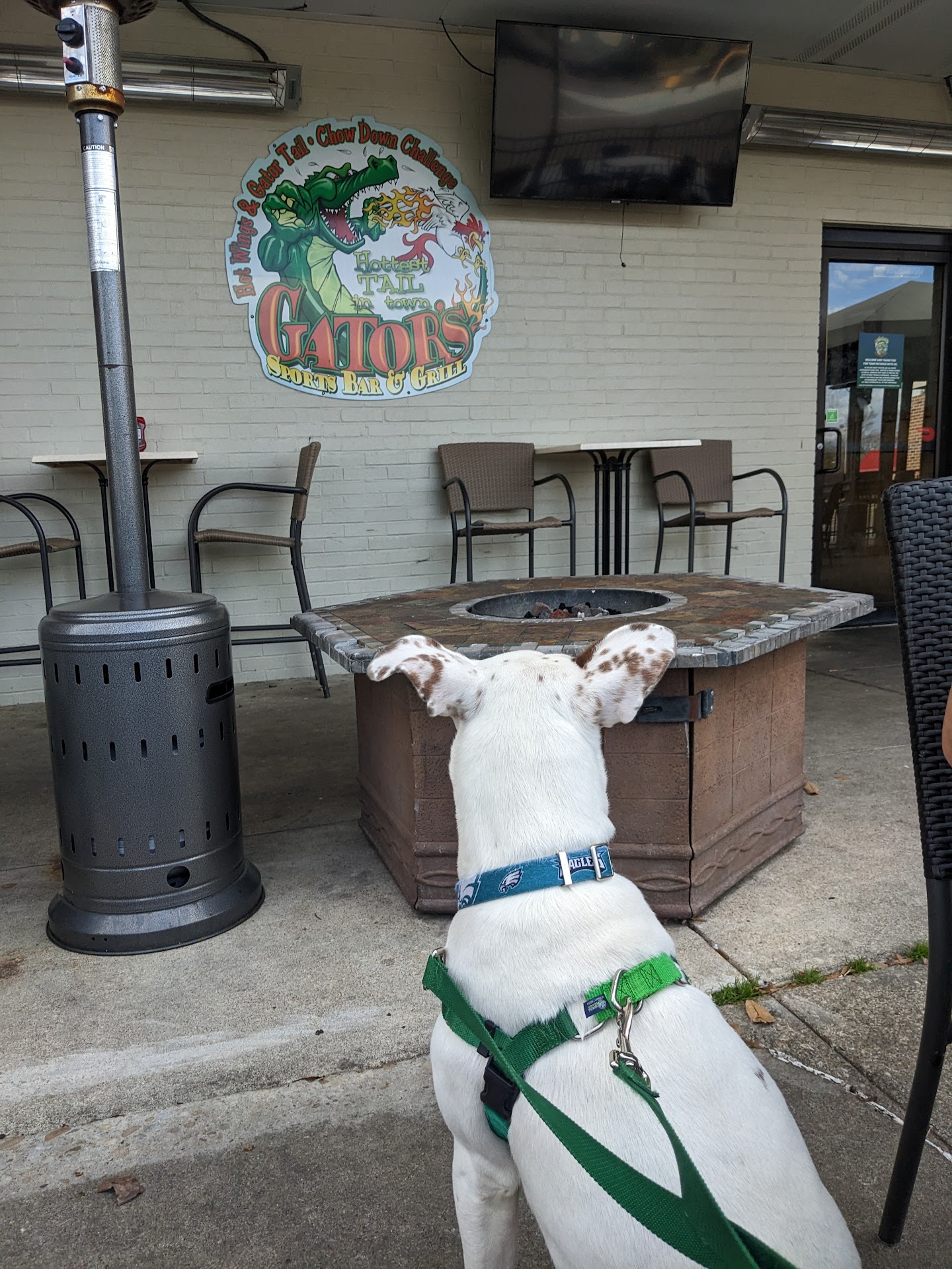 Read moreWent to AJ Gators on a Saturday night to meet up with some friends. We sat out on the patio. There was a live band playing who sounded pretty good. There was a class reunion going on too so it was pretty packed. We were still able to find seats in the corner which was more than fine with us. The service was slow which was to be expected. I ordered a fuzzy naval (hardly no alcohol) and my boyfriend ordered a beer which came fairly quickly. We also ordered potato skins for the app which we specifically asked to please bring BEFORE our entrees! I ordered the french dip sliders off the app menu for my meal and my boyfriend ordered the BBQ platter with potato salad and onion rings and two waters.