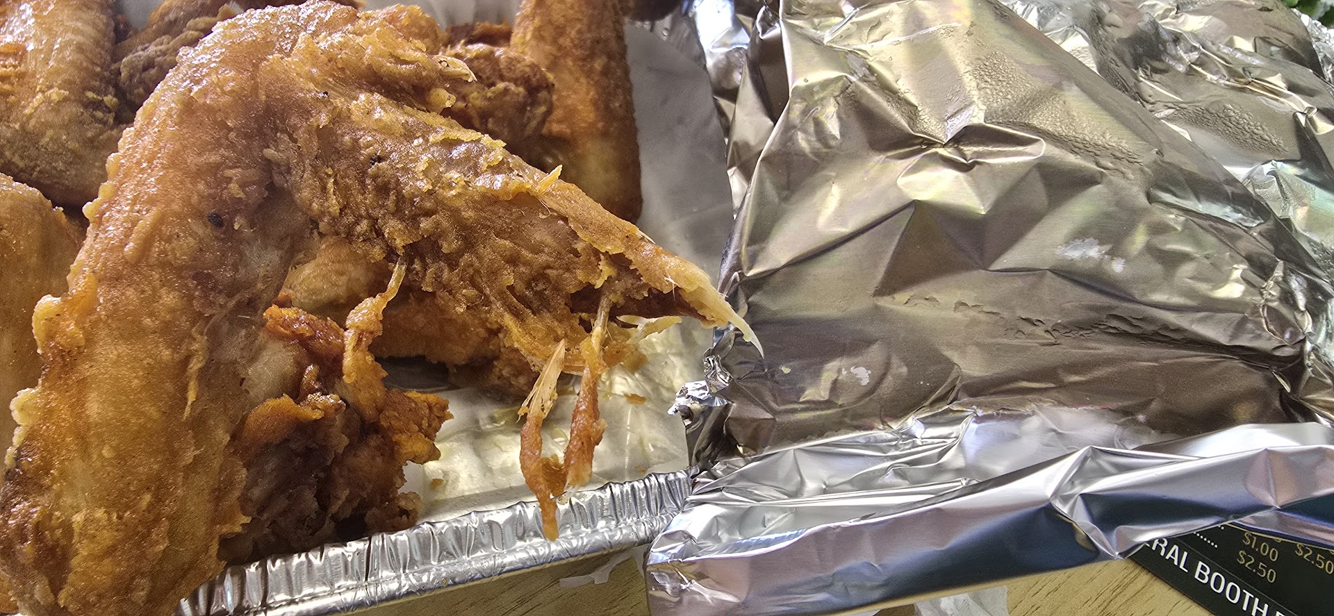 Read moreI dont even know where to start: from the service to the product, there is nothing good to say. From the moment we placed an order, the cashier gave us a bad attitude when we asked them to repeat what he said as we couldn't understand and wanted to be clear. Then comes the chicken. It's like they gave you old chicken that didn't sell and refried it. Chicken is dried, oily, and bland. Not to mention there is no attention given when cleaning this chicken before serving it to the customers. Yes, those in the pictures are indeed unplucked feathers left on the wings being served to us, the customers. I am honestly tempted to call the health department on them because how is this acceptable? All in all, we would NEVER come back to this place. Tried once and that's all we needed to know to...
