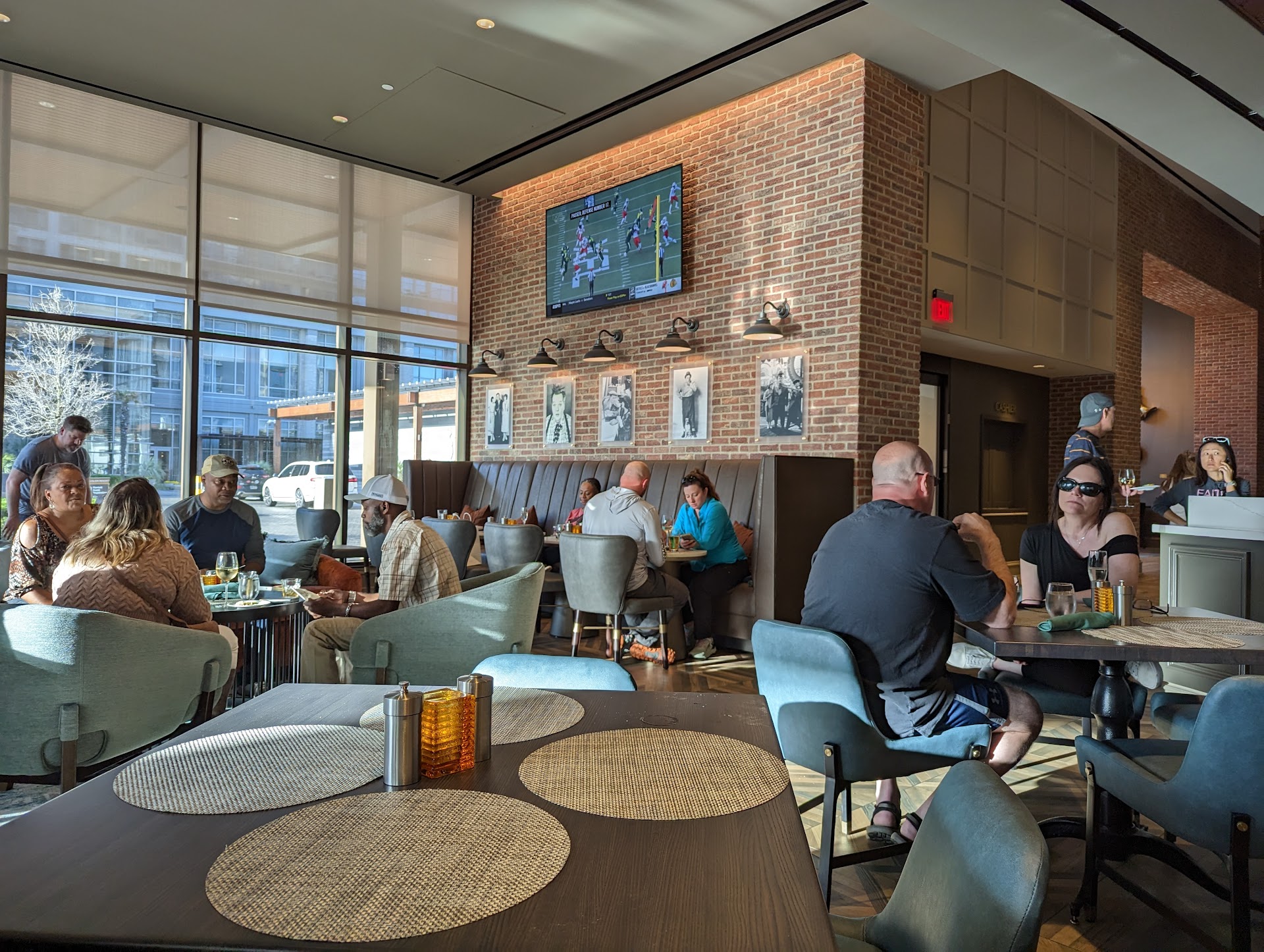 We had breakfast here Sunday morning as part of the Embassy Suites' complimentary service and were sat by a well staffed crew. The food was good - scrambled eggs, breakfast potatoes, oatmeal with several different toppings, and even pastries were available.