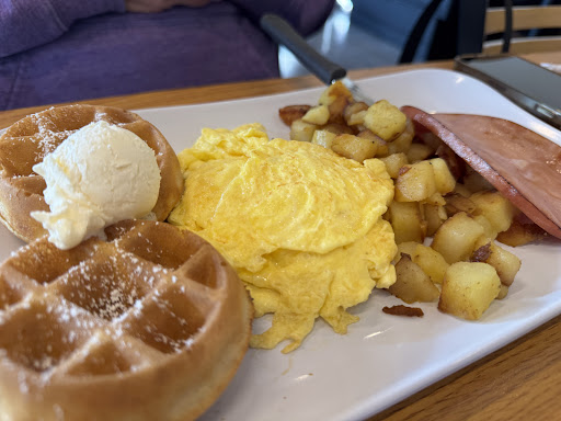 Read moreFood taste like freezer food honestly. Very C-level. Nothing overly good some things just not good. If you're hungry, it'll do, but not something youllI be looking forward to going to again. I had the steak and eggs, and pancakes. Nothing worth the walk or drive, i definitely wouldn't wait. No seasoning on the steak we had to use A1 to make it palatable. Ordered two steaks medium and both came out well done. On try two, one steak was medium well-well, still needed A1.