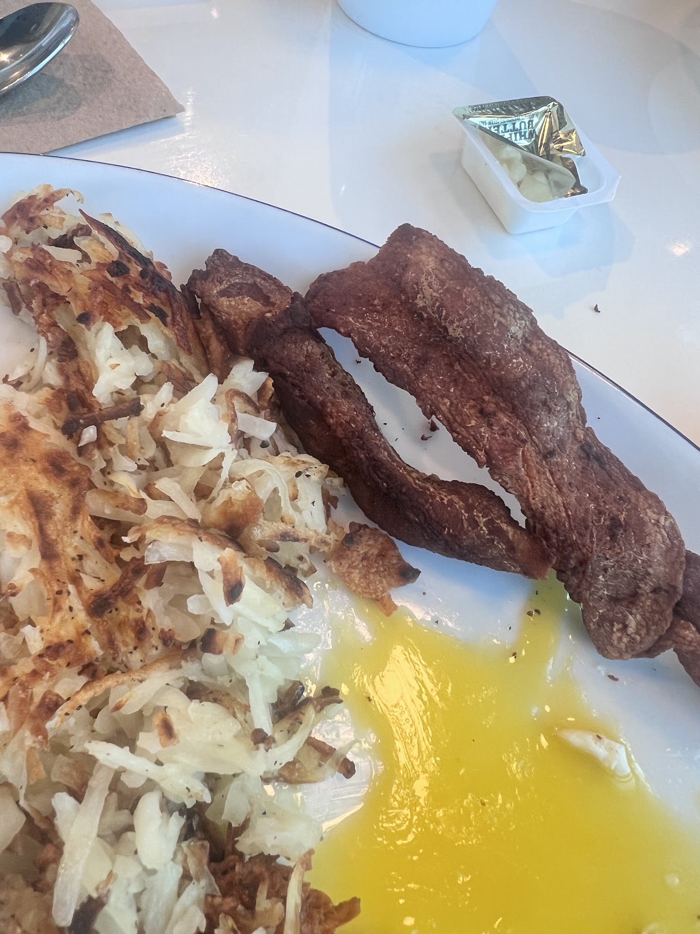 A high temperature of 79F on November 9th, so my friend and I decided to head to the boardwalk for breakfast and a walk. We loved the old Belvedere and were anxious to try the new location. We arrived just before 8 a.m. and the main door to the diner was locked and entry was thru the hotel. We entered the diner and the booths were either occupied or required cleaning from the last customers. We sat at the counter. The waitress showed up without an order pad or pen to take our drink order as well as the couple next to us. She provided us water and I had asked for coffee with cream. She brought it back quickly. We and the couple next to us ordered. There were two cooks. Their pace may have been slower since it is not tourist season but they were attentive to the orders. I ordered the pancake breakfast ($14): 2 pancakes, 2 eggs scrambled, hash browns, 3 sausage links, and white toast. I let my friend try the pancakes and she loved them - perfect, a must order next time for her. No loss of food prep from the old location, The food is tops #1. The staff I'm mixed on. Booths not cleared, not prepared to take orders, no sense of urgency to prepare orders; however, friendly and the breakfast served was delicious. The new location is small, it does have an outdoor seating area for the summer months. The bottom line is to overlook any minor issues, relax, and enjoy a great breakfast at a very...