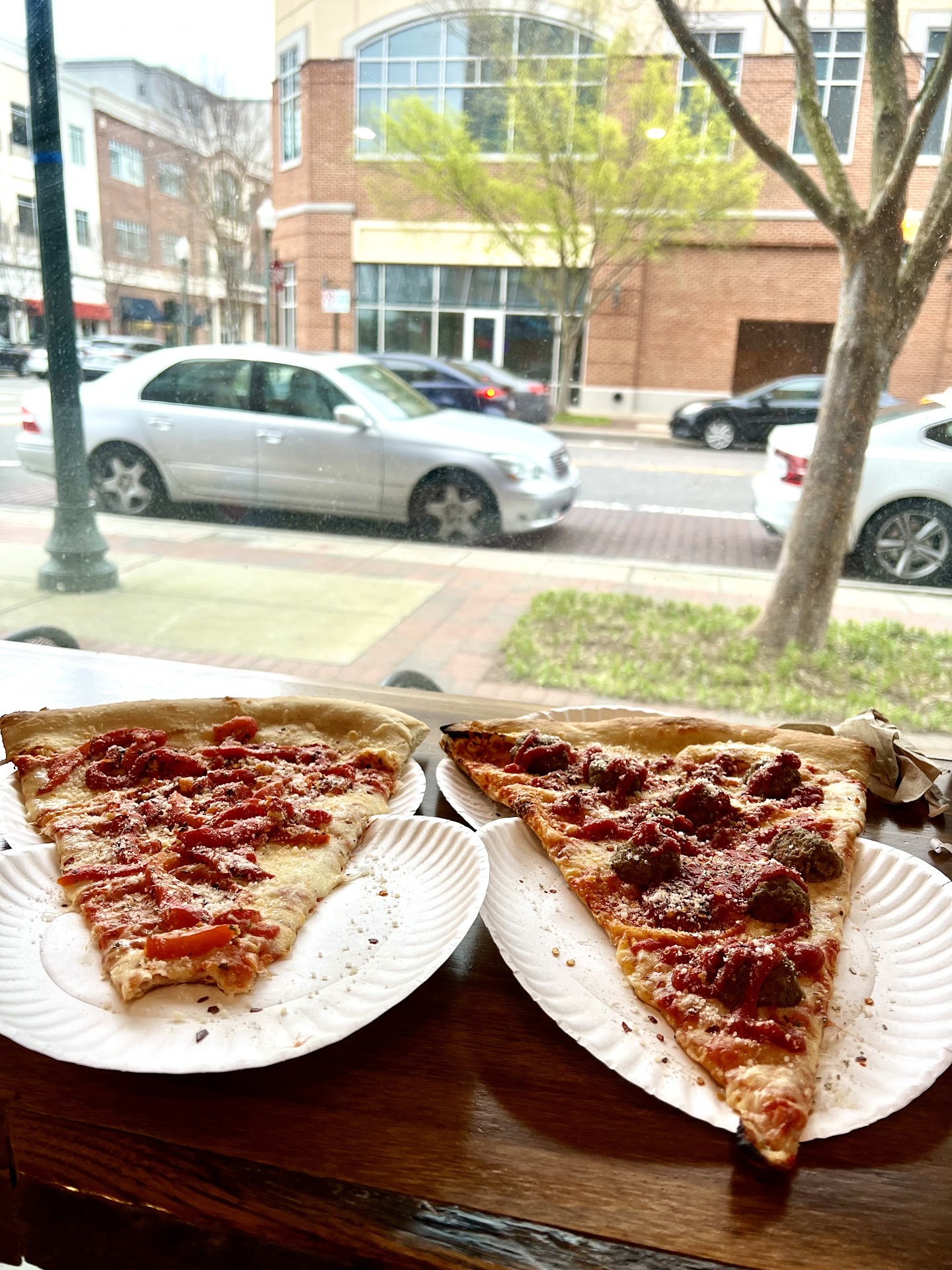 Two plate pizza slices is where it's at for those who can go to town with some pizza. From Benny's Damatos to Benny Cavalloni's. Every Benny's takes the last name of its owner.