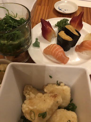 I got recommended this place from friends who liked sushi. I also like to try the food here as well because I checked their website and saw they have some Korean food made me think this place would be perfect restaurant for me since I like both Sushi and Korean food. I made a plan to try many menu before I get in the restaurant . But I wasn’t lucky like my friends who recommended this place to me because the waitress made me want to change my mind to come back on another days when she seat me very poor table I feel exactly uncomfortable sitting very close to the next table like back to back to another customer. Plus it’s just right front of the door. The waitress didn’t do even greeting me but she just use her face pointed me to sit at that table. I need to ask her if I can get another better table after sat there for a few minutes, so I can move to sit in dining area. The food very good taste for me. Takosu is a little bit disappointed me with the way they cut very thin and too small portions for $14 appetizers but the taste was very very good. Age Tofu is the best for me. Nigiri sushi very good fresh especially UNI and Surf clam. I liked all the food I ordered. I will come back to try another sushi roll and Korean food and I wish I will luckier have another waitress...