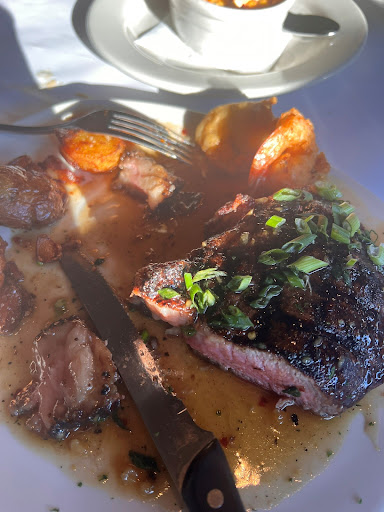From the moment we did cross the threshold into that hallowed hall of flame-grilled fare and maritime delight, Lady Meghan greeted us with a countenance so fair and warm, 'twas as if the very sun had taken human form. With a smile that could mend the most wearied soul and a voice as gentle as a harp played by angelic hands, she did guide us to our table as though escorting us to a royal banquet.