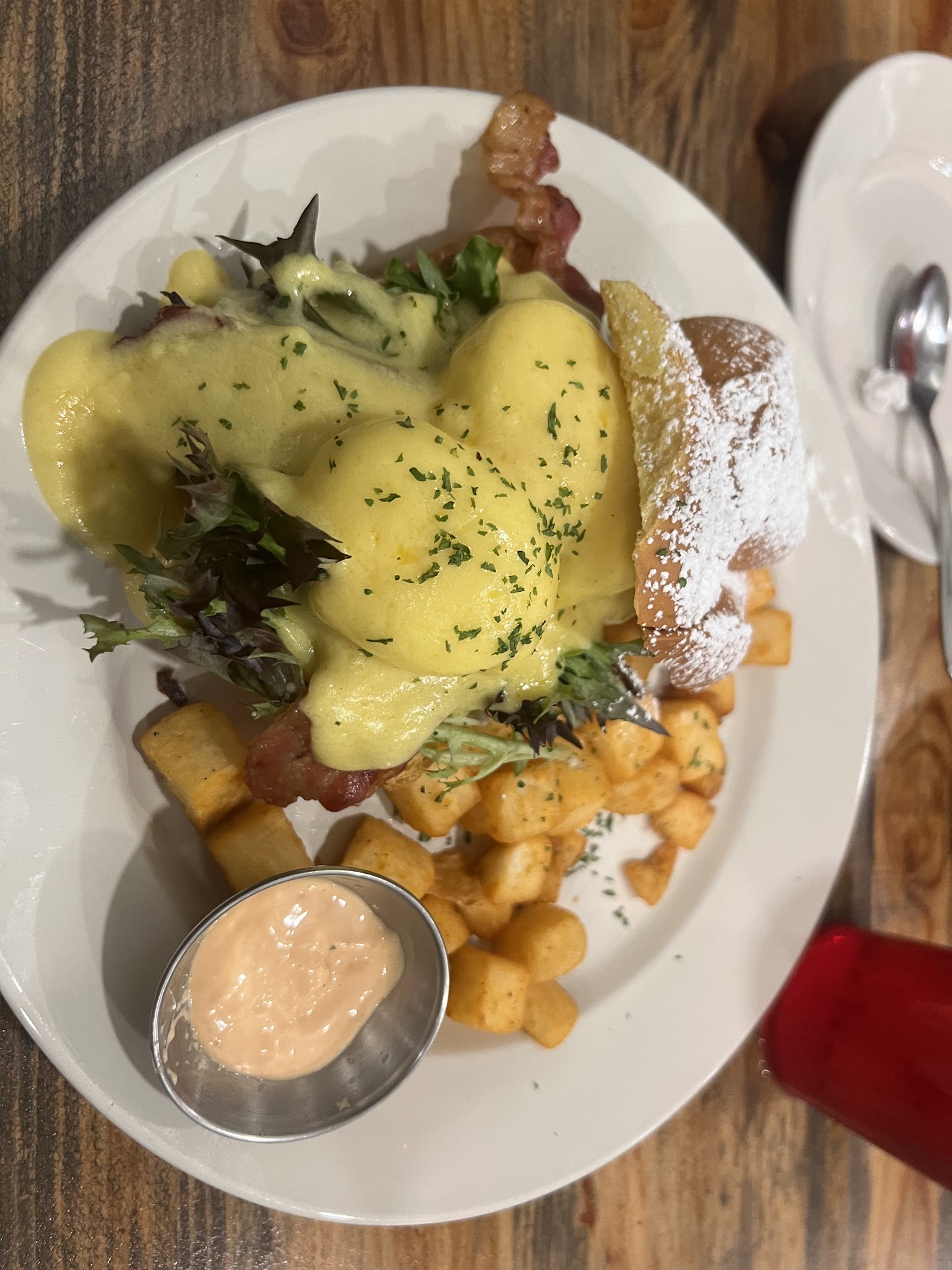 Read moreThis is the third time we've been here. The first two times were phenomenal - we fell in love and it became our go to place on the weekend. This time was a complete disaster. Our waitress had glasses and was awful. She was bickering with the other waitress near us, she forgot my husband's eggs, and I ordered turkey sausage because I don't eat pork and she put in Argentinian sausage. As soon as I took a bite I knew something was off - and the other waitress caught it! The waitress without glasses fixed the other's mistake, apologized, and started taking care of us because the waitress with glasses who made the mistake seemed to be avoiding us after the mishap! Then, glasses waitress halfheartedly apologized, didn't offer any sort of comp, and started telling us it was someone else's fault she made the mistake and was venting to us about another employee - keep back of house in the back! Then, when she brought the receipt my husband he opened his mouth to ask a question (about being charged for eggs he never got) and she snatched the receipt out of his hand before he could even say anything. Extremely unprofessional. I'm grateful to the waitress without glasses, but we won't go there again because of the waitress with glasses. She was rude and unprofessional. I understand mistakes happen, but she did not...