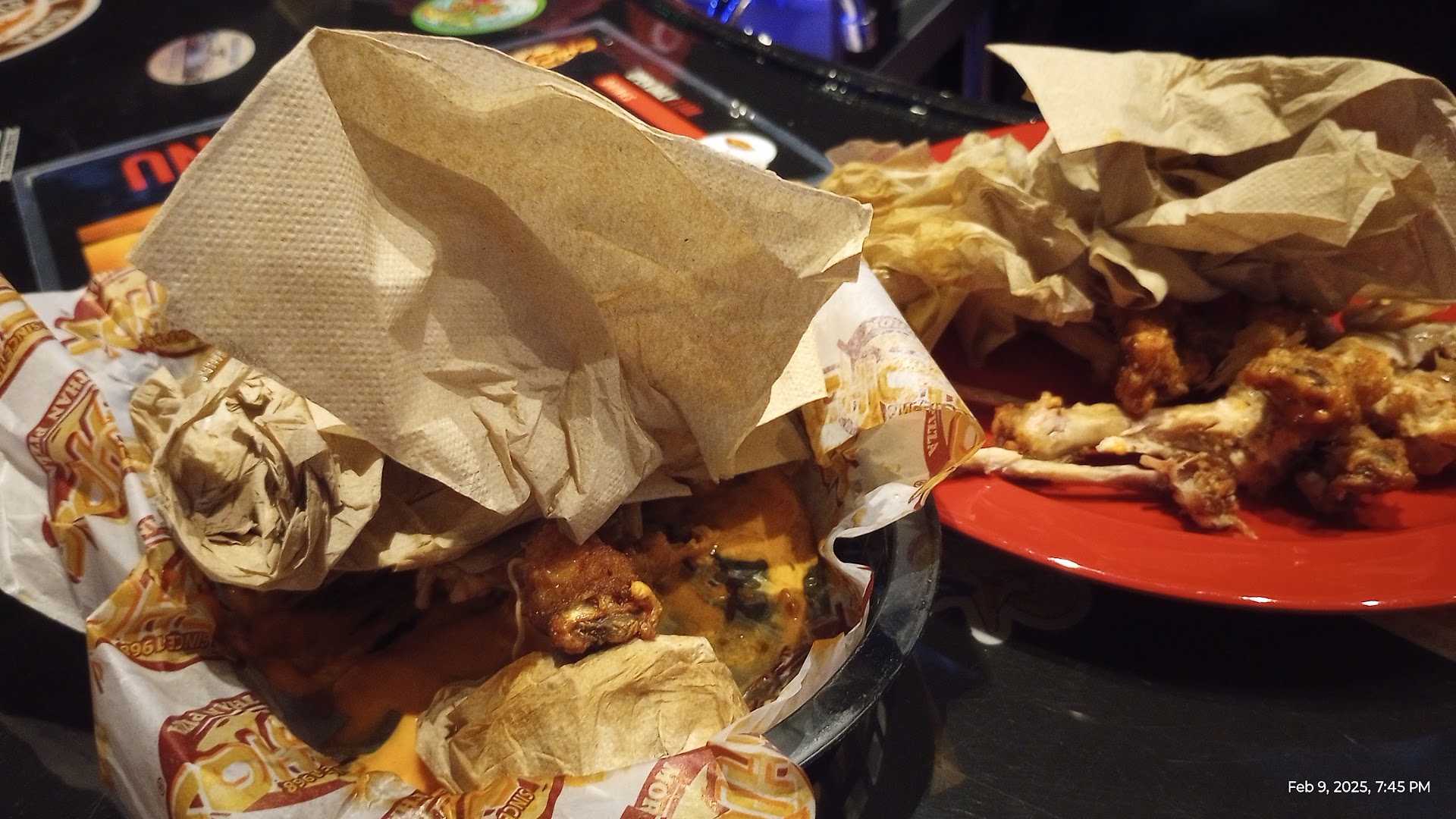 The only reason I am giving any stars is because the wings were not bad. We came In during happy hour. I had to ask the waitress what the specials are. They should be approaching us with the specials as a customer we shouldnāt have to dig it out of the staff. My drink had black mold looking stuff floating in it. One chunk was huge I have no idea how the bartender missed that while making my drink. After 15 or so minutes and my guests already finishing their entire drink the waitress comes over and my drink is still full.. I have to ask for one with no mold or whatever it was. At this point itās not happy hour anymore because again she just didnāt check on us for at least 15 Minutes.. our food comes out and we ordered 10 wings each and a side of fries to share. Do you think our fries came with our food..? Nope waitress forgot to put it in then didnāt take any blame for it. Blamed the kitchen. Our fries came out when we were done eating.. now it takes some time to eat 10 wings each.. I was purposely waiting to not eat some of my wings because I really wanted them with my fries. The side of fries for $5 in the app section was SMALL like a small fry at fast food.. looked Like they were rushed and not cooked fully.. we sent them back immediately.. again I would have tried them in the very least even though they looked cheap, undercooked and small portion but they didnāt come out with my food. We still tipped 20% but will absolutely never be back. Iām so disappointed.. and do you think they even took a $1 off our tab to say sorry!? Nope waitress couldnāt care less. She knew she did a bad job. It was just not...