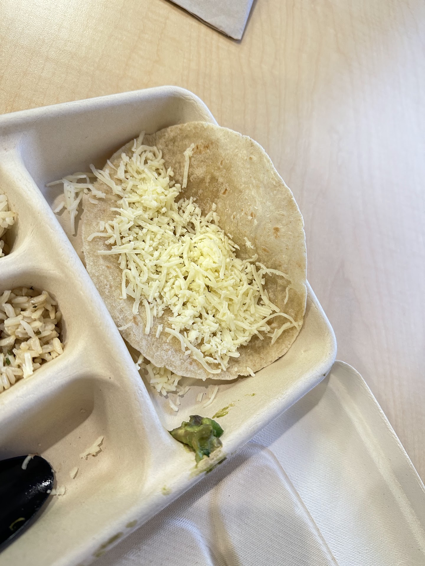 Read moreI have been to this location countless times during lunch/dinner and each time is a different experience but somehow none of these experiences ever reach five stars. I ordered 3 things today in person; a kids quesadilla, a barbacoa burrito and a chicken bowl. First of all, they were being stingy with the beans, they tried to give me a serving of almost 1 tablespoon and a half of beans on top of a mountain of rice. He tried to give me a lid that was bathed in guac until I told him to please give me a new lid for the bowl. But the guac bath still manage to get all over my kids plate. This is how the plate looked along with the cold tortilla and cheese that we also received. The burrito was wrapped wrong so with each bite that I took, food was spilling out from the bottom. 9/10 times these people don’t change their gloves, I’ll see them touching the cashier, their phones, etc and then they will actually touch customers foods. That’s just disgusting. There is cross contamination everywhere, you will find corn in the red salsa, sometimes lettuce in your order even though you never ordered any lettuce. The list goes on and on.