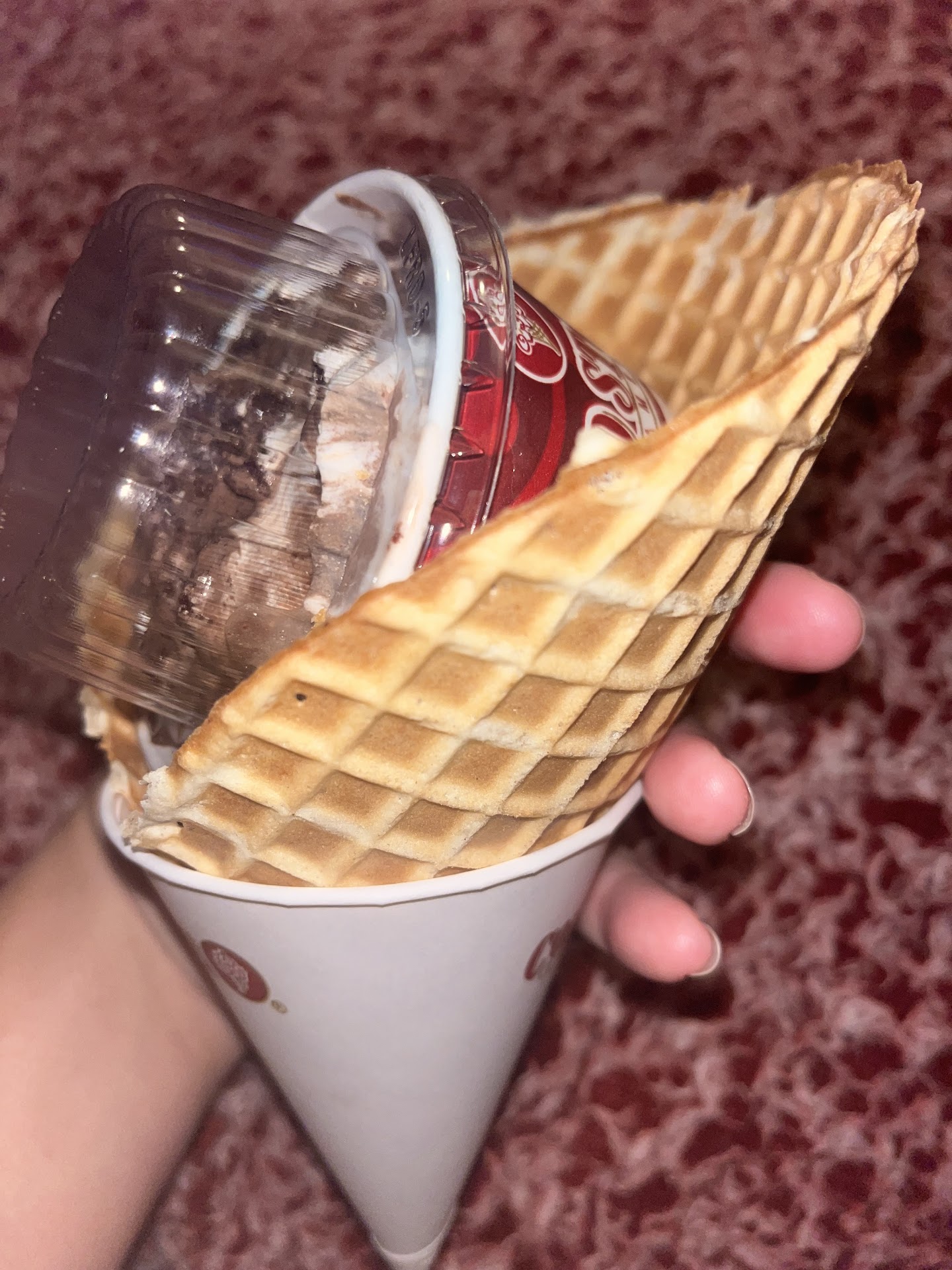 Ice cream is fine, the dark chocolate ice cream I had was really rich and smooth. Three stars were taken off due to the irritated worker who took our order.