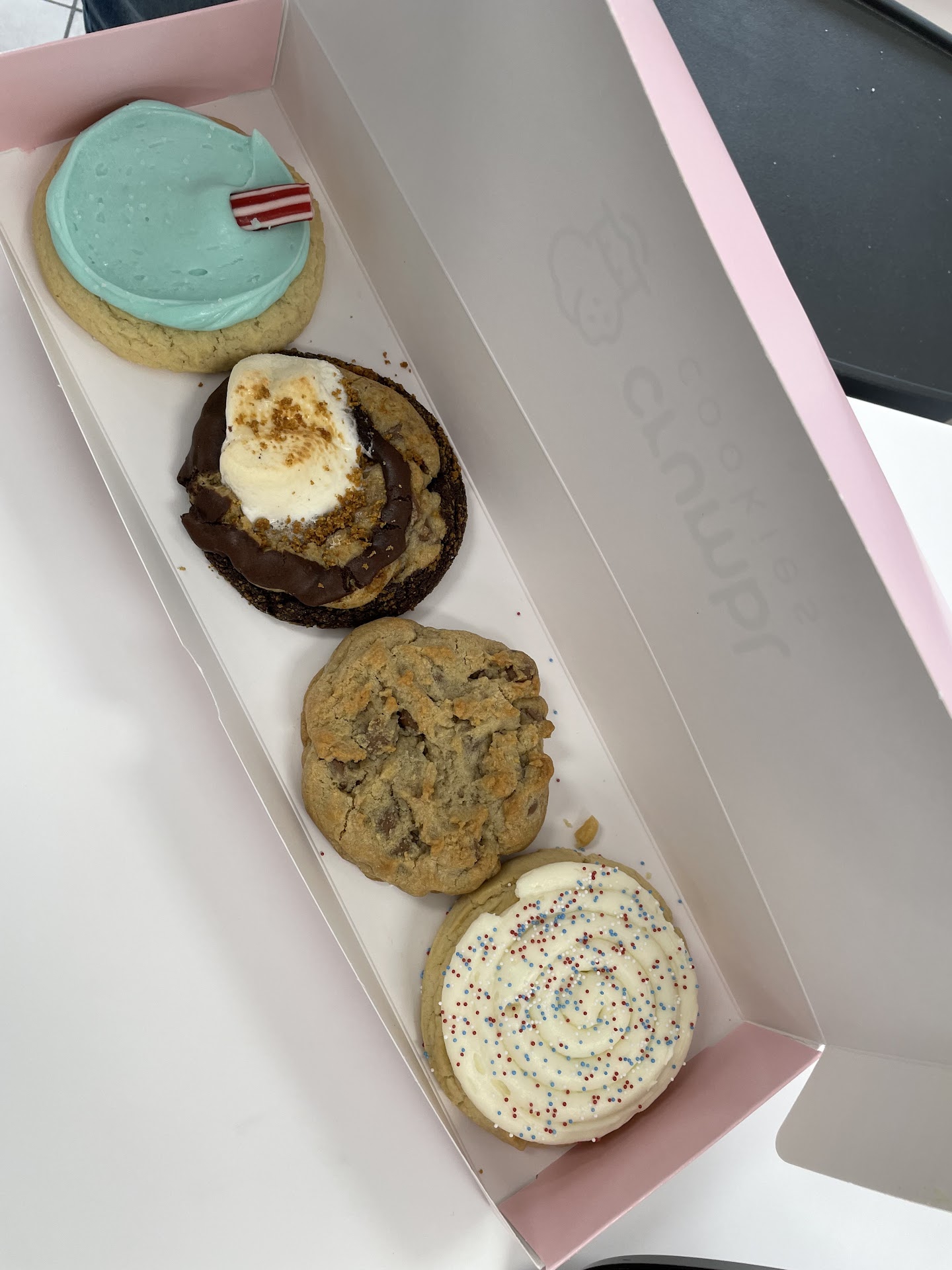 Crumbl is a very popular place to buy cookies. We have stopped and looked at different times when we were in the shopping center for other reasons. We have hesitated to purchase because the cookies are huge with several servings to each cookie and we always want to try different flavors. Unfortunately, the smaller size is only available for large catering orders. Crumbl is open late on weekends and there is often a line of people outside. I finally decided to buy some for the family to sample and picked out 4 flavors. The main ingredients that stood out in all of the cookies were salt and sugar. Extremely salty and extremely sweet. 4 cookies, $16. No one would eat them. They went in the trash. Since the small piece I tasted shot my blood sugar to 219, I decided to look on the website, find the actual nutrition and serving size and cut the cookies into actual serving size portions. I used a kitchen scale for accurately weighing the portions. I posted a photo here of the actual serving size of each cookie. I called about refunds and was told to email and received a quick reply that no refunds are given for not liking the cookies. Although the website states real butter is used, we didnt taste the butter in the cookies and Crumbl uses “vanillin” which is artificial vanilla flavoring and other artificial flavors. I am surprised by all the 5 star reviews. I gave two stars because the place is clean. The boxes and logo are both cute. Cookie taste...