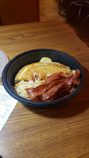 Bathrooms are very clean! The food was excellent. My waitress needs to determine to do back of the house. She served me AFTER the table who came after me. Seriously offended. I have been waited on by her co worker. Now I need togo box and she is on her break I gave them 3 stars. Food cooked perfectly (thank you Marcus the manager cook). The co worker server is Amanda-top notch service. Seriously rethink hiring a 16 year waitress. I never once got looked at by my original server. The tip will be given to Amanda and 1/3 given to Alexandria. Good luck in your new career Alexandria, take time to really re-think being a waitress. You are not happy serving. The food pictured is a grand slam with 4 bacon, 2 pancakes, hash browns 2 eggs were eaten before I got the togo box.