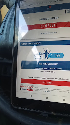 The Domino's online pizza tracker notifies me that my order has made it out of the oven and will be handed in less than two minutes or they will offer me a free pizza on my next order.